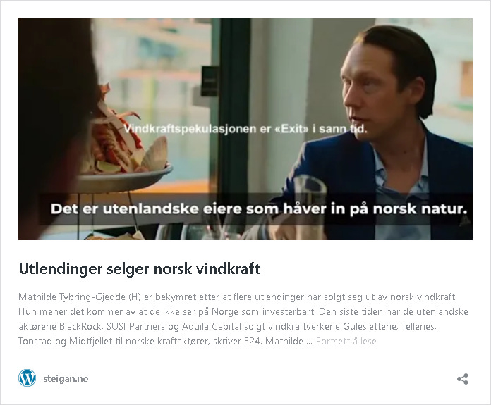 Kampen for det «Det grønne skiftet» står fram som den viktigste drivkrafta for dyr energi i Norge og at Europa skal overta fordelen av det som kunne vært Norges konkurransefortrinn for vårt næringsliv og innbyggernes velferd.