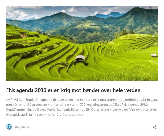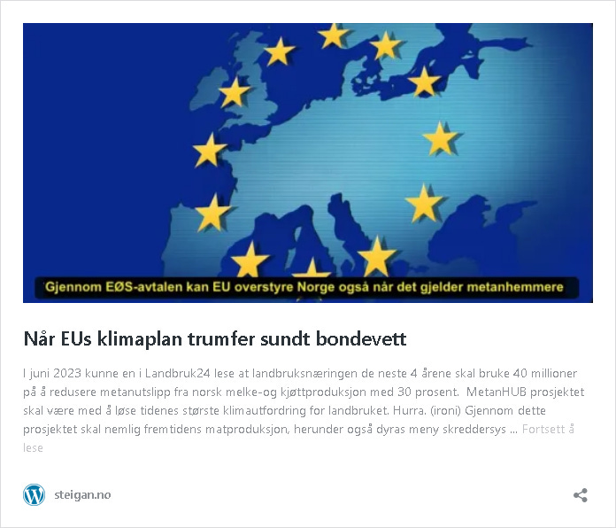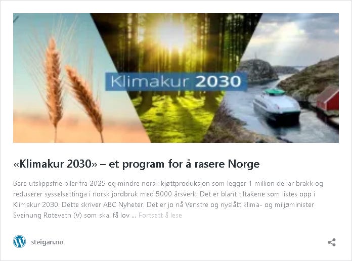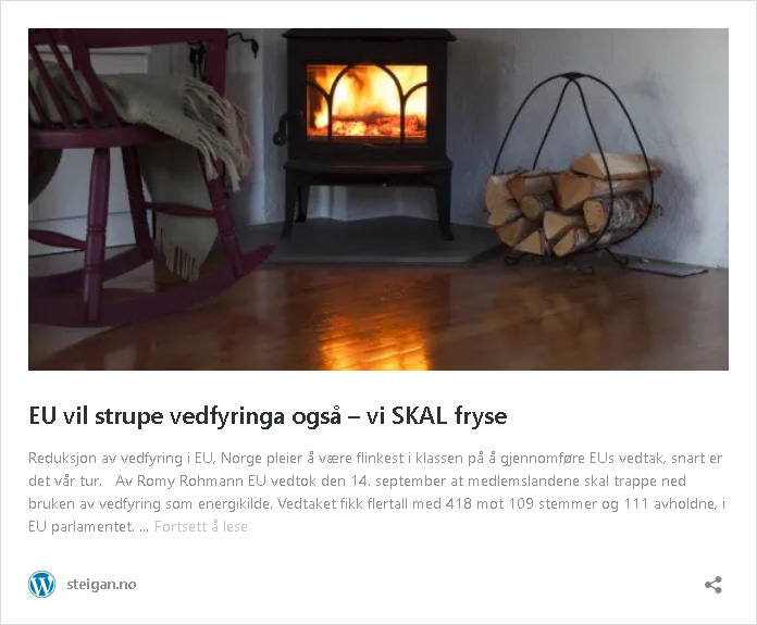 Dette kommer fra et ikke-valgt byråkrati i Brussel som styres av de stor korporasjonenes interesser. Bakteppet er «det grønne skiftet» og den vanvittige strategien Net Zero, som faktisk vil gjøre det umulig å leve i Norge dersom det ble gjennomført.