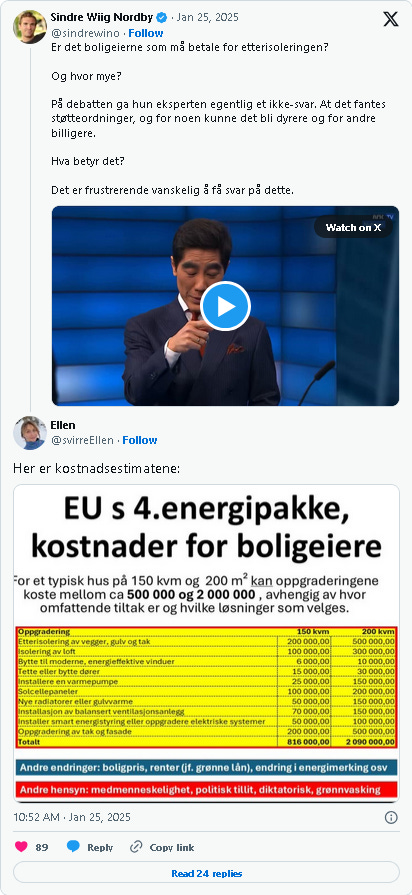 Mimir Kristjansson er blant dem som har pekt på denne selvmotsigelsen. Forkjemperne må bestemme seg – disse reglene er enten viktige eller ikke. Hvis de er så utrolig viktige bør noen kunne forklare hvorfor de er det. Det er ikke åpenbart for folk hvorfor en gjeng i Brussel skal mene noe om hvordan vi skal isolere huset vårt, eller hvorfor det skal være en geopolitisk sak.