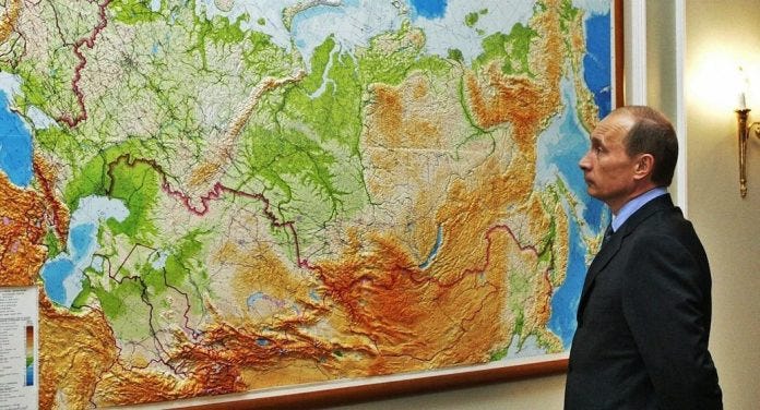 Russland, som en overveiende landmakt, har historisk sett vært innesluttet og holdt svakt ved å begrense tilgangen til pålitelige maritime korridorer. Russlands svakhet som en stor landmakt kan imidlertid bli dens styrke dersom Russland forbinder det eurasiske kontinentet med land for å undergrave det maritime hegemoniets strategiske fordel.